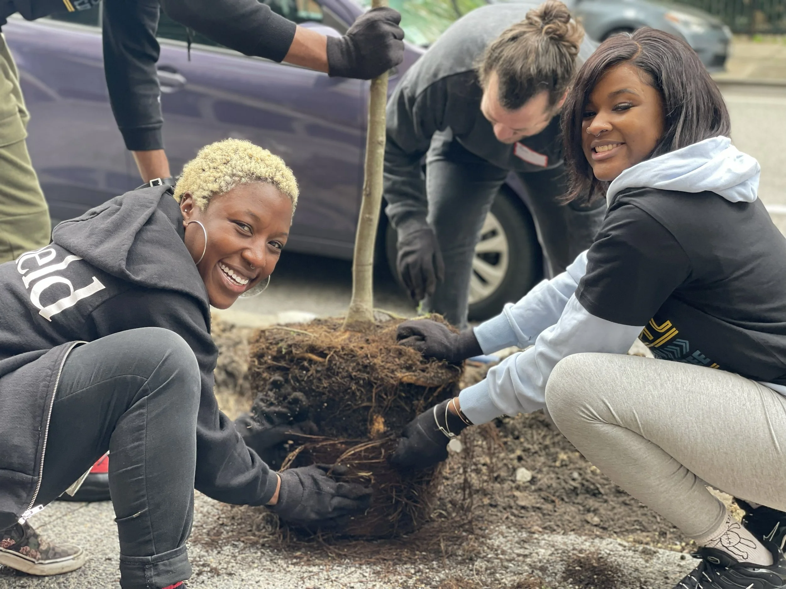 We plant trees in our four communities and the surrounding area, and welcome volunteers from anywhere to join us. All planting events are on our Eventbrite page, linked below.